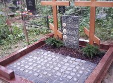 Мы восстанавливаем могилы исходя из любого исходного состояния. Так было и в этот раз. Мы изготовили и установили гранитный цоколь из красного гранита, клиент просил избегать черного цвета. Установили дубовые кресты и восстановили положение памятника, который был на могиле изначально. Посадили два можжевельника и оставили зону для будущих посадок цветов.
