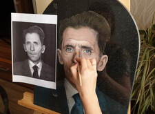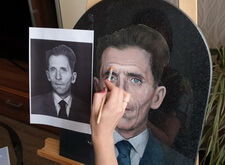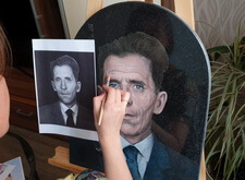 Затем наступил этап детальной прорисовки: первым делом была изображена одежда усопшего, затем – его волосы, с лишь после этого было очерчено лицо. По ходу работы изображение приобретало всё большее сходство с оригинальной фотографией.