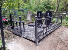 В данном заказе нам предстояло полностью благоустроить место захоронения. Клиент пожелал заменить на участке всё, кроме ограждения. Нам предстояло изготовить два классических гранитных памятника с прямоугольными цветниками, а также выложить территорию могилы брусчаткой. Первым делом мы приехали на кладбище и оценили исходное состояние места захоронения: оно поросло сорняком, а потому выглядело заброшенным.
