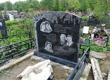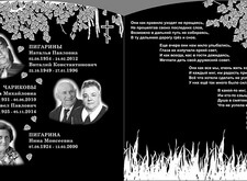 Изготовили необходимые трафареты, выбили надписи. Лицевая сторона памятника отводилась под основную информацию о покойных, на тыльную же была нанесена эпитафия, состоящая из пяти четверостиший. И лицо, и оборот надгробья были украшены гравировкой берёзы.