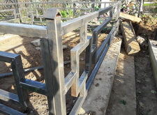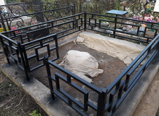 В данном случае нам надо было из самой обычной могилы, периметр которой был обнесён простой оградкой, сделать опрятное и красивое место захоронения с обильно украшенным гравировками надгробьем. Так выглядел участок на момент начала работ.