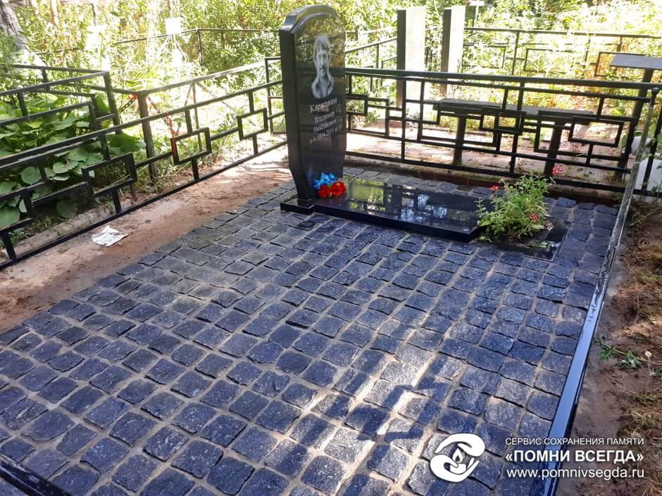 Укладка гранитной брусчатки на могиле